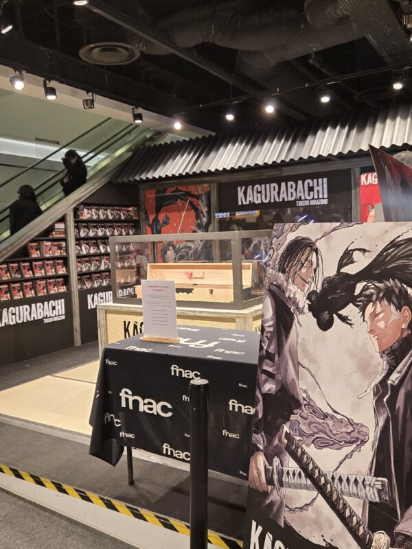 Pour le lancement du premier tome, Kana a mis les petits plats dans les grands, soirée de lancement, kit presse impressionnant… mais également un espace dans la Fnac des Halles (Paris) avec en cadeau un shikishi à l’effigie de la série pour l’achat du tome.
